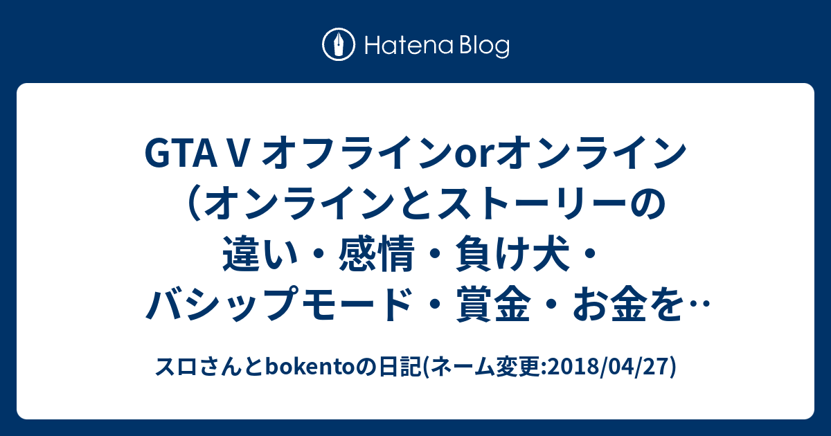 Gta V オフラインorオンライン オンラインとストーリーの違い 感情 負け犬 バシップモード 賞金 お金を良く貯める方法 レベルを気軽に上げ れる方法 ジョブとアクティビティ ジョブの難易度などについて 更新 スロさんとbokentoの日記 ネーム変更 18 04 27